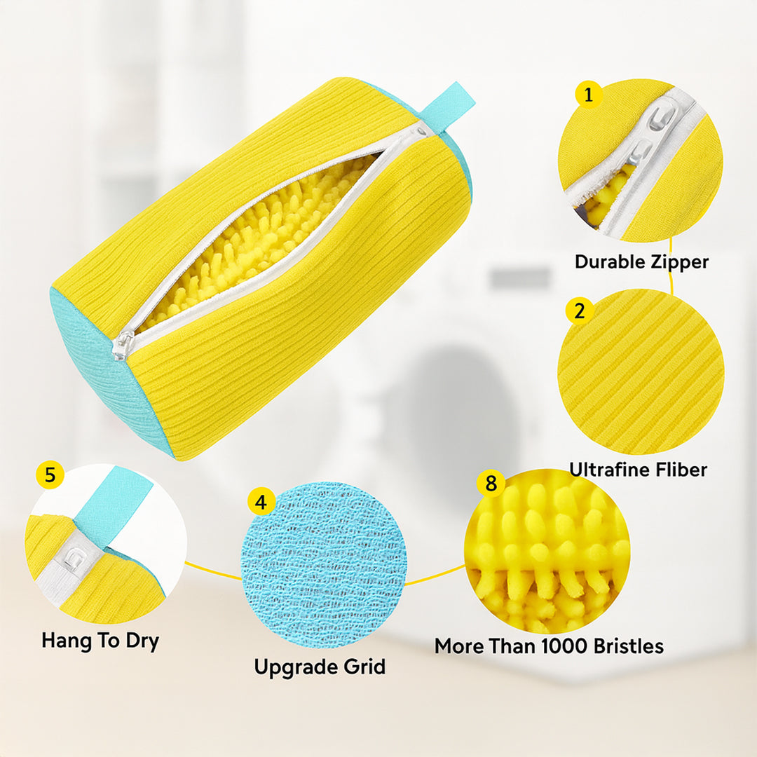 Keep your shoes clean, protected, and long-lasting with our high-quality padded washing bag. Designed with a durable zipper, ultrafine fibers, and over 1000 soft bristles, it delivers gentle but effective cleaning inside any washing machine. The upgraded breathable grid ensures quick drying, while the built-in hang loop makes storage effortless. Perfect for sneakers, sports shoes, and everyday footwear wash safely without damage.
